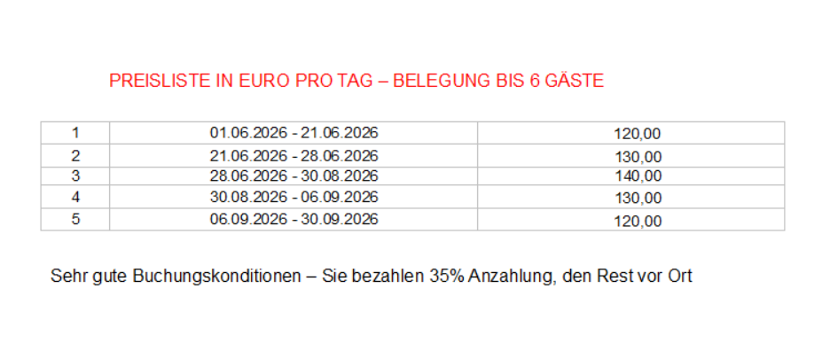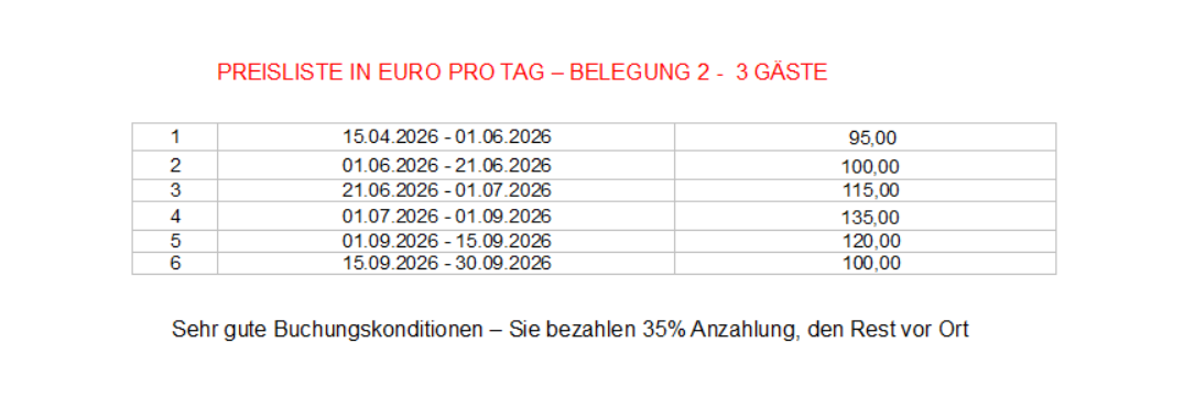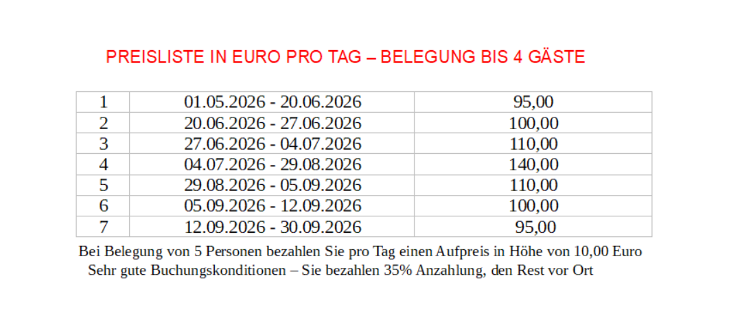 PREISE UND BELEGUNG 2026