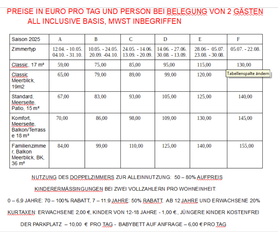 23.04.2026 - 26.04.2026, 29.08.2026 - 12.09.2026 und 15.09.2026 - 19.09.2026 - alle Zimmer belegt